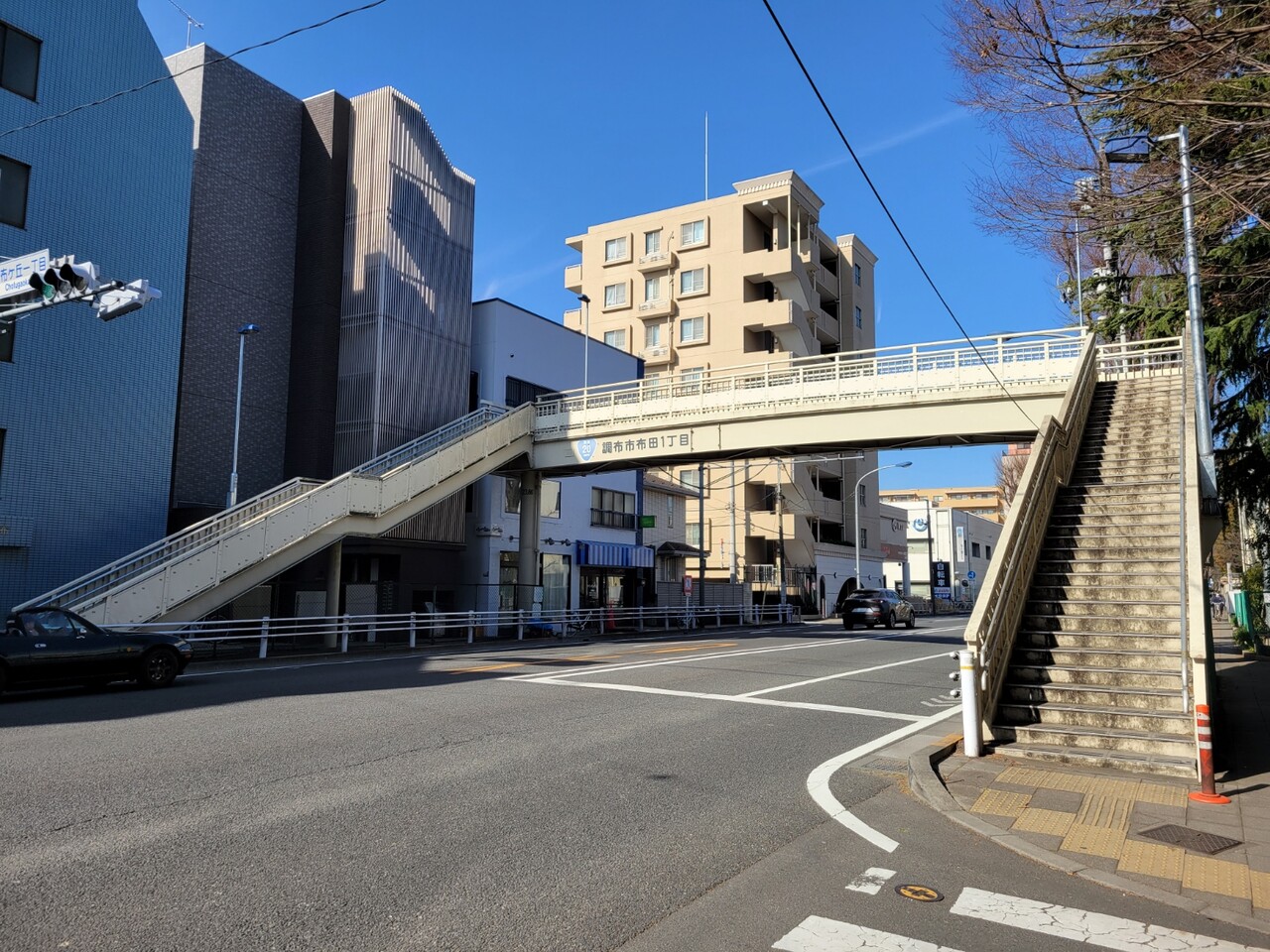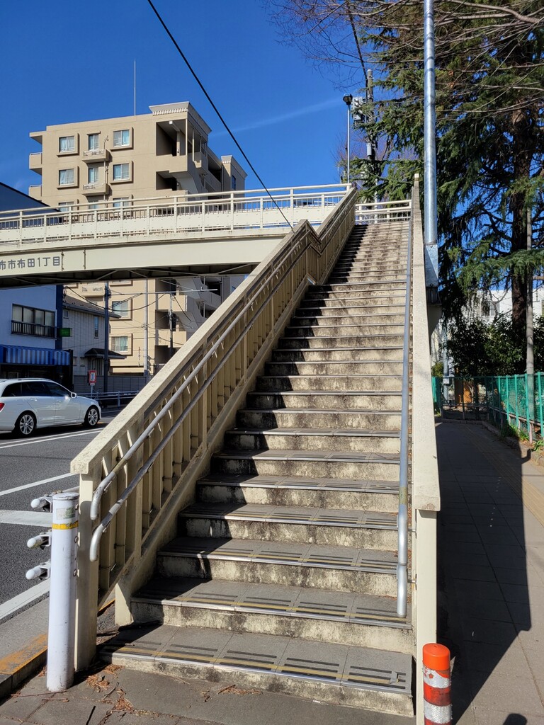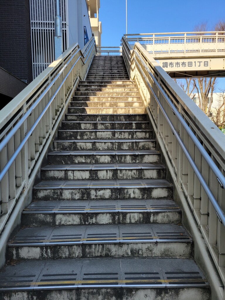 住所的には、布田1丁目と調布ヶ丘1丁目をつなぐ、いっちょめいっちょめ(昭和)な歩道橋です。