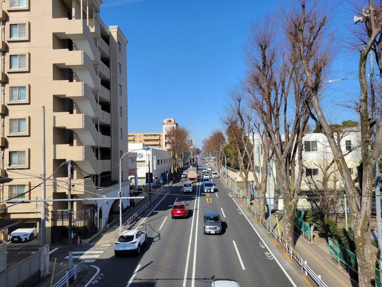 上からの道路の景色はこんな感じ。調布駅方面。