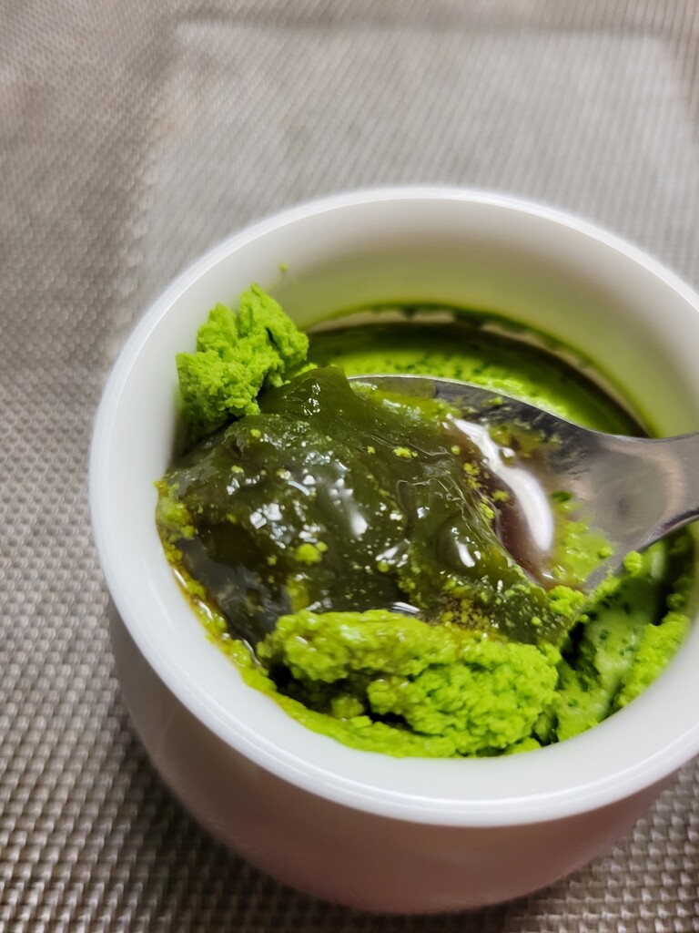 やべええええ うめええええええ わらび餅も抹茶仕様なんですが、そのやわらかわらび餅とカップの底からでてくる黒蜜が絶妙にコラボ。こーれはとても美味しいですね。贈り物としても最高な奴だと思います。はい。