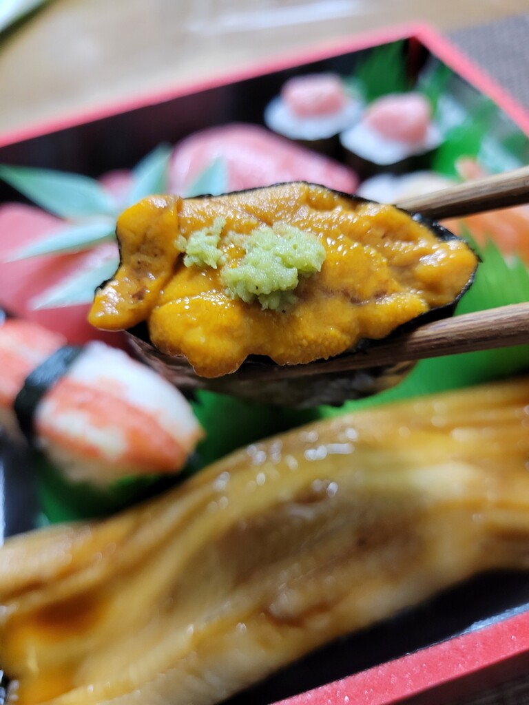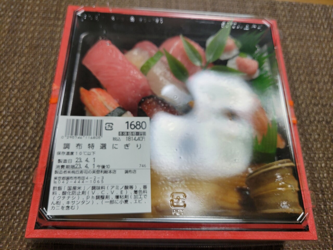 1680円とスーパーのお寿司としては高めではありますが、おそらく開店直後の特別品というのと、美登利寿司のお店で食べたら実際はこんなもので済まないと思いますので、お買い得感を感じました。