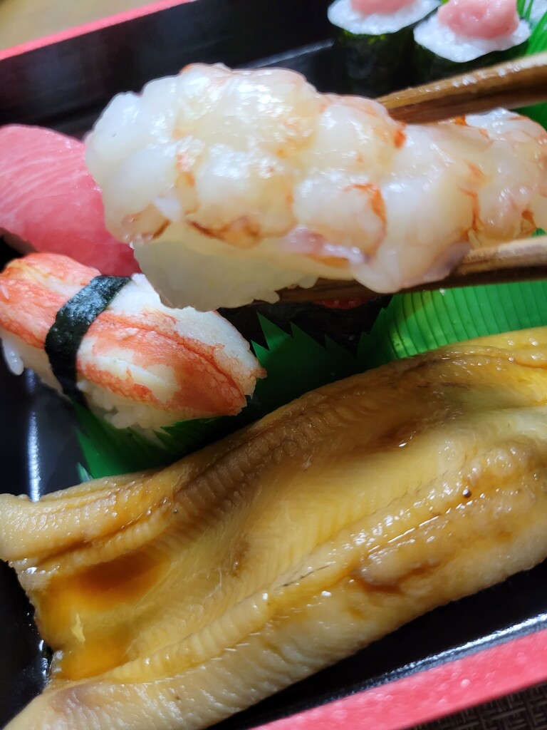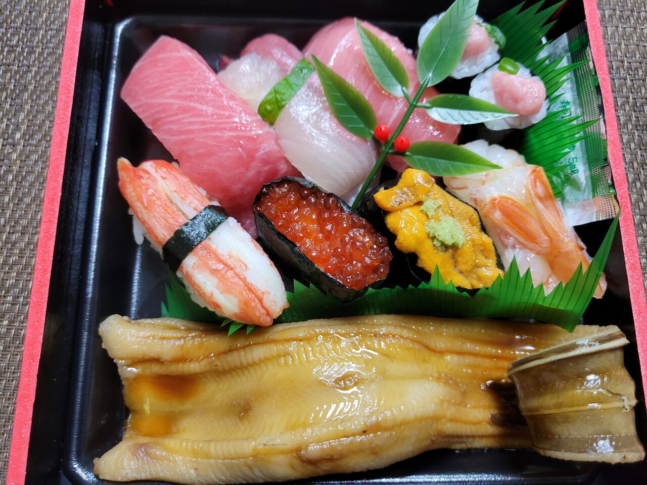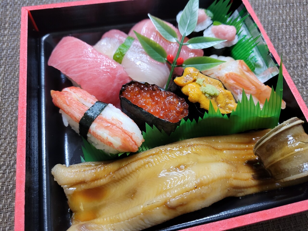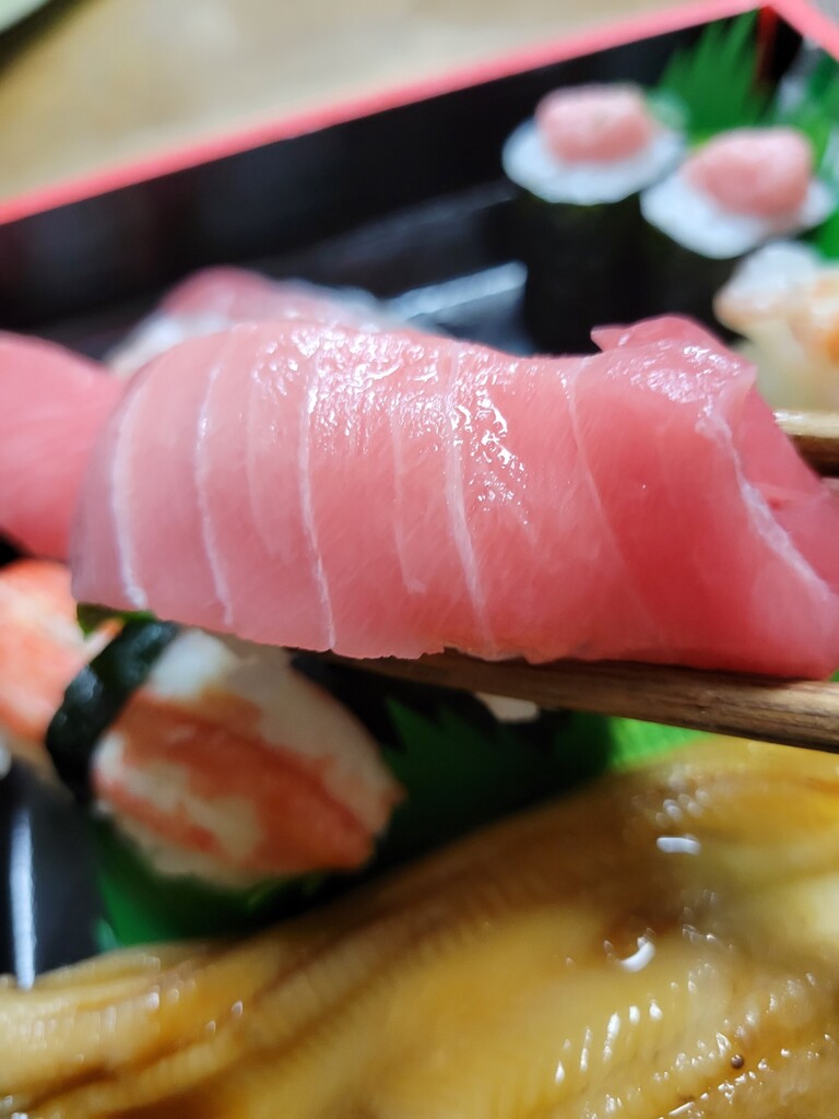 ふふふ。大トロ輝く美味しそうなお寿司であります。穴子がでっかいですね!高級なネタが入っているので、やはりお得感があります。