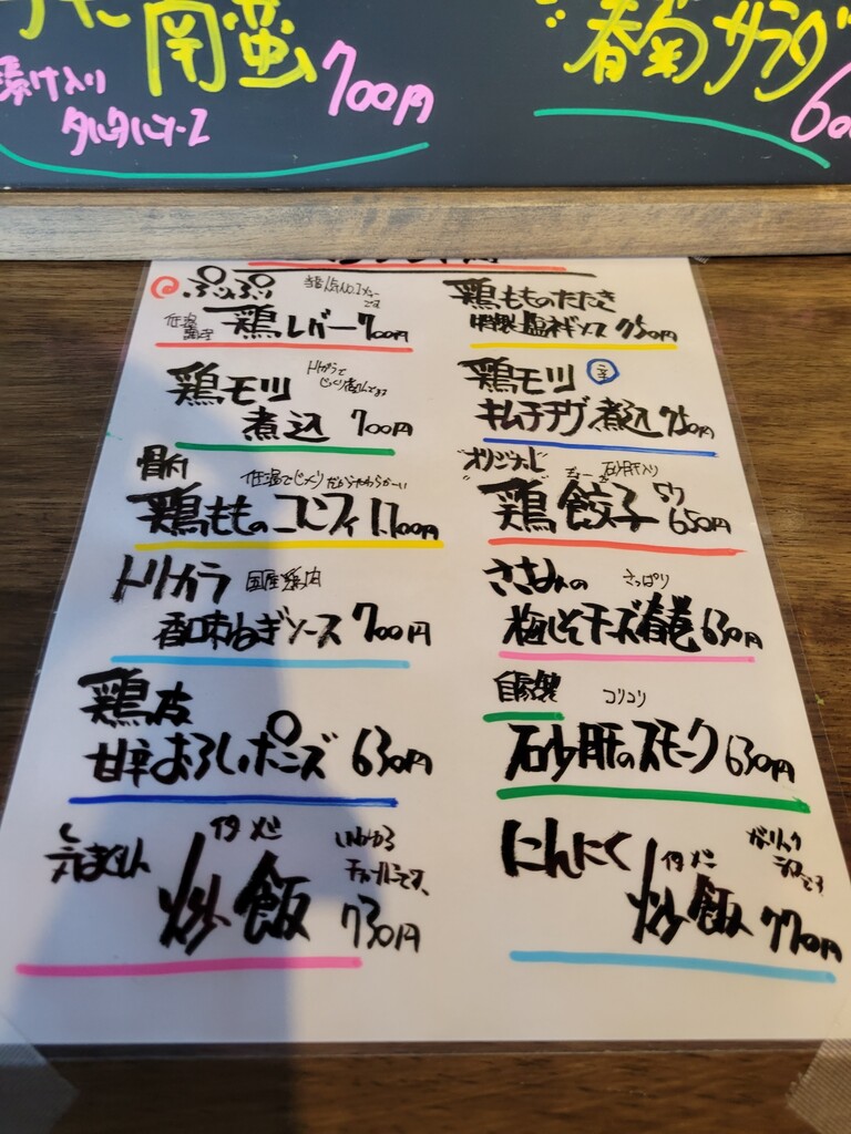 充実の鶏料理ですね。トリカラ香味ねぎソースと、チキン南蛮を注文してみました。注文を受けてからちゃんと作ってくれるので少し時間をかかるよっと丁寧に説明をいただきつつ、私としては全く問題なくむしろ嬉しかったですねえ。