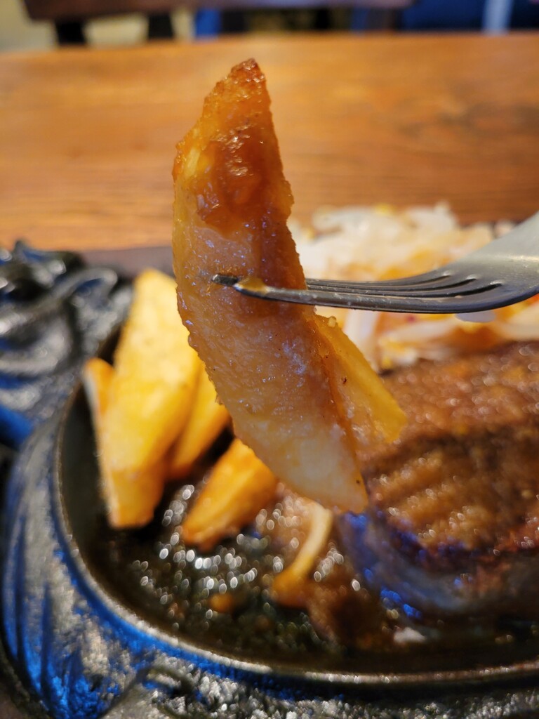 良くファミレスだと150gだと薄くて広い肉であることも多く、レアで頼んでもミディアムででてきますが、ジョンブルは全てが最高の状態で提供されてきました。凄い!まあ、ステーキのプロ中のプロの料理ですからね。最高に美味しいステーキです。まじでステキ!!・・・ さて、残りのステーキも熱々のうちに食べないとな。