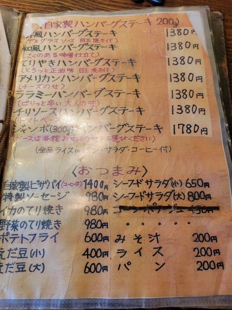 ハンバーグもおつまみも絶対美味しいだろなあ。また来よう・・・