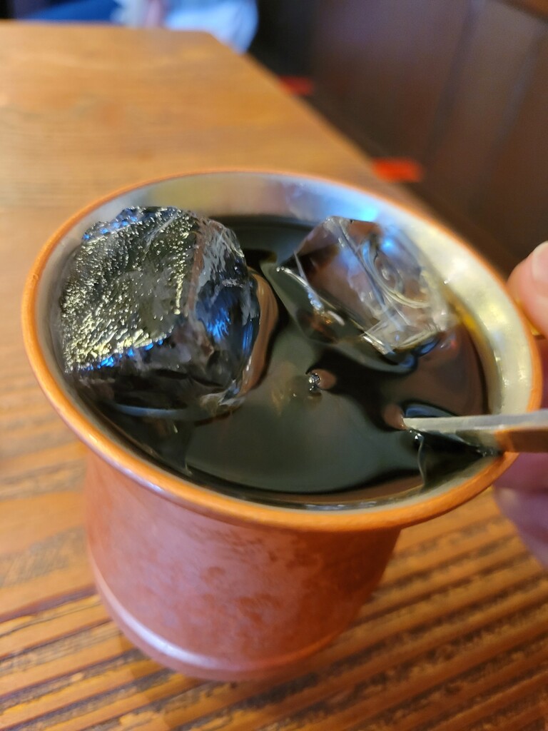 キンキンに冷えた金属製のコップにコーヒーがたっぷりはいっていたんですが、こちらをぐびっと一口。