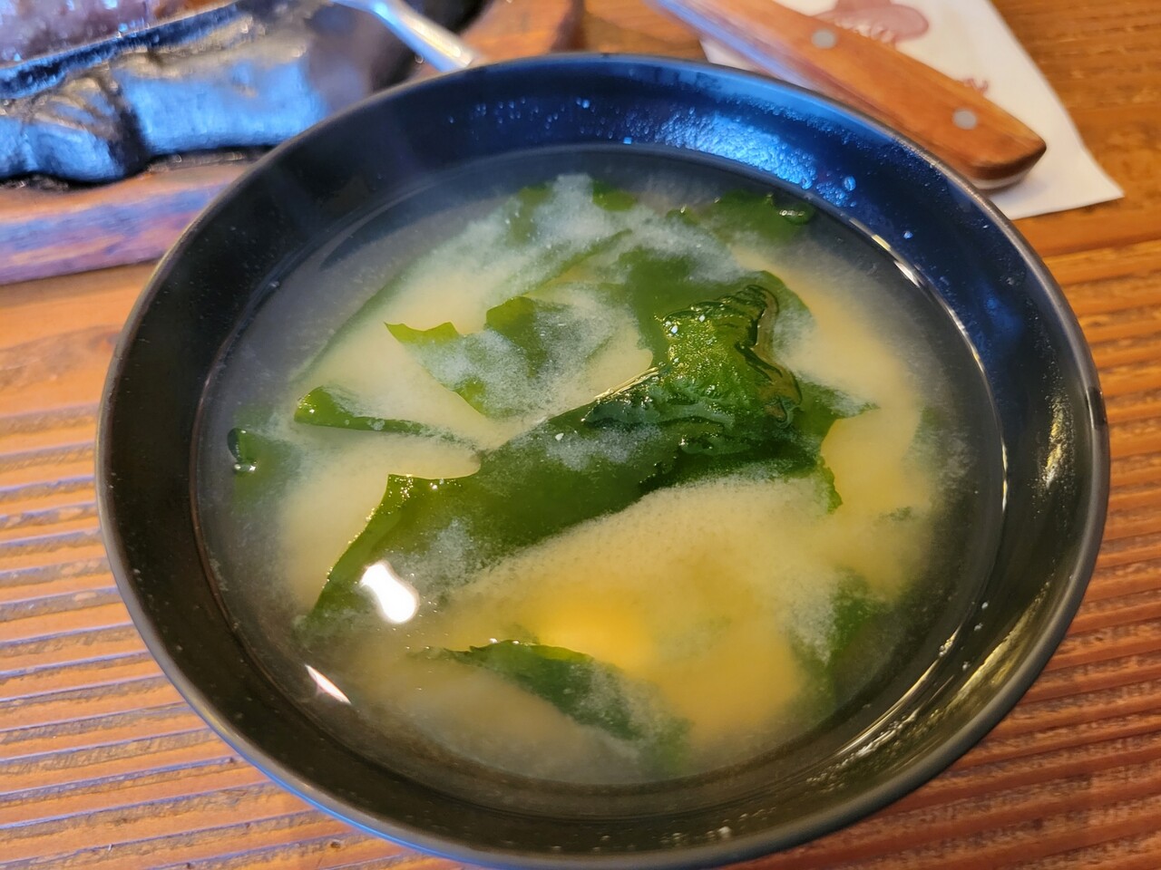 肉汁豊かで味わい深いステーキとご飯があうことあうこと。すすむすすむー。味噌汁もズズー。夢中で食べ進みます。