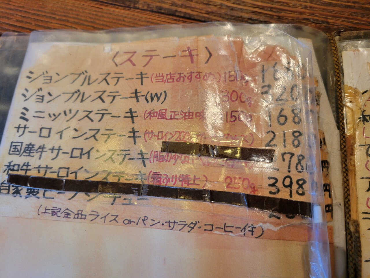 先日、ちょうふ通信にてLINEのオープンチャットを使ったトークイベントをしたんですけども、その際の議題として「死ぬ前にもう一度食べたい、食べれなくなったらショックで泣いちゃう調布のソウルフード」について情報交換したんですが、ご参加くださった"ジャスミン"さんより「柴崎ジョンブルステーキ、最後のコーヒー付き」という情報をいただいたのです。これは絶対美味いに違いないと思い、翌日のお昼にお店にいってしまったどうも私です。