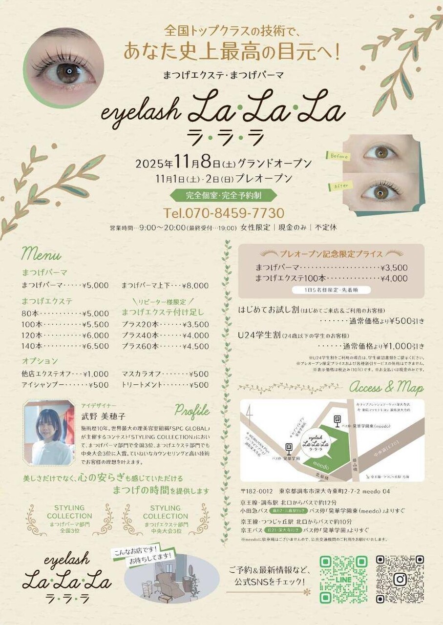まつげサロン eyelash La・La・Laが深大寺東町のmeedoに誕生!とても上質空間だった!