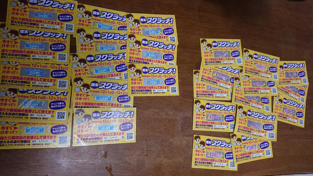 というわけで調布市民のみなさま。じゃんじゃか当たりがスクラッチでてるようですので。ぜひ調布にてお買い物楽しんでみてください(笑)