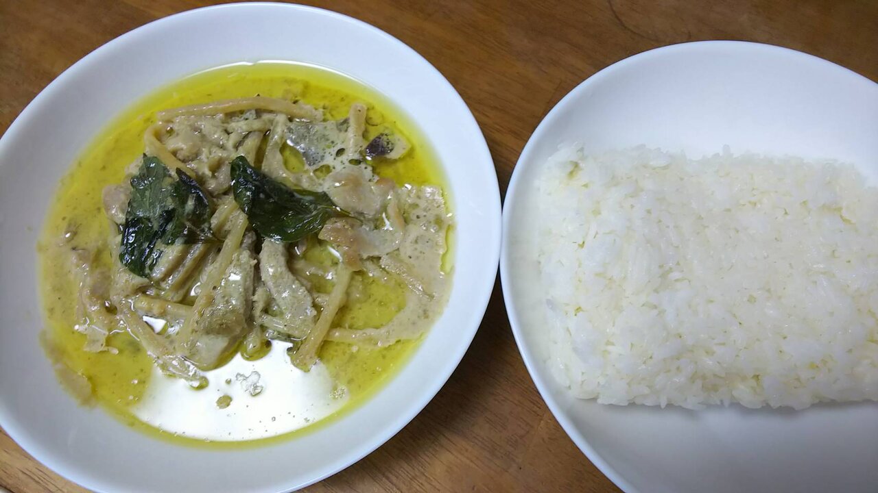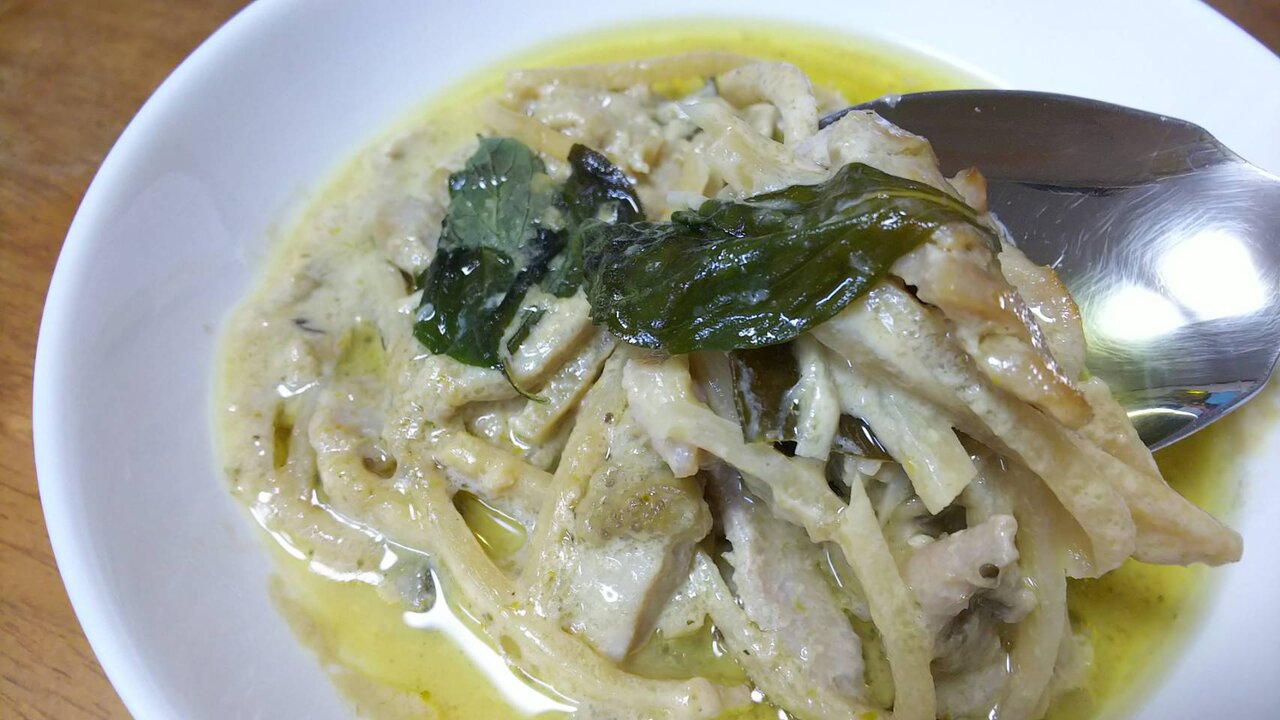お次はゲーン・キャオ・ワーン。なんか今度タイ料理屋いったときはこの名前でグリーンカレーを注文して通ぶるのもありかもしれませんね。