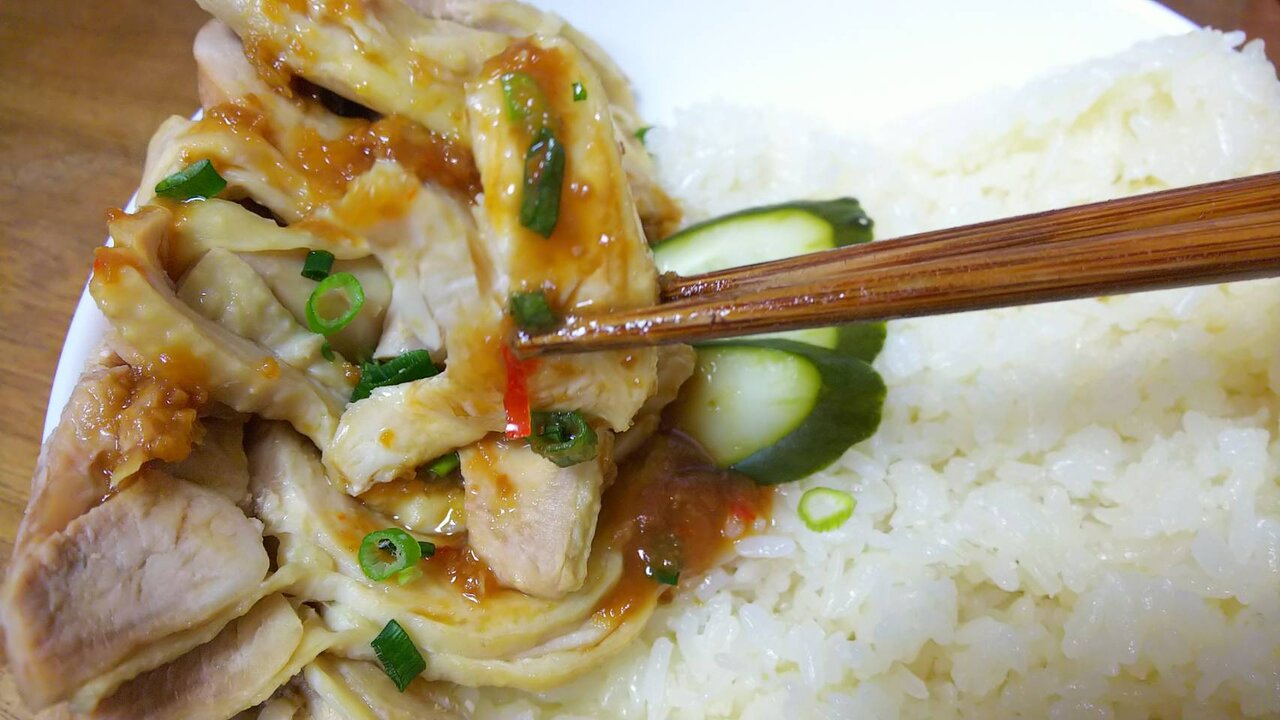 実は初めてこの料理を食べたのですが、先入観シンプルな料理だと思っていましたが、シンプルの中にも丁寧な美味しさがあって美味しい。ご飯はちょっと塩味を感じ、鶏肉は箸でもきれるほど柔らかい!甘辛タレがそれを引き立てます。