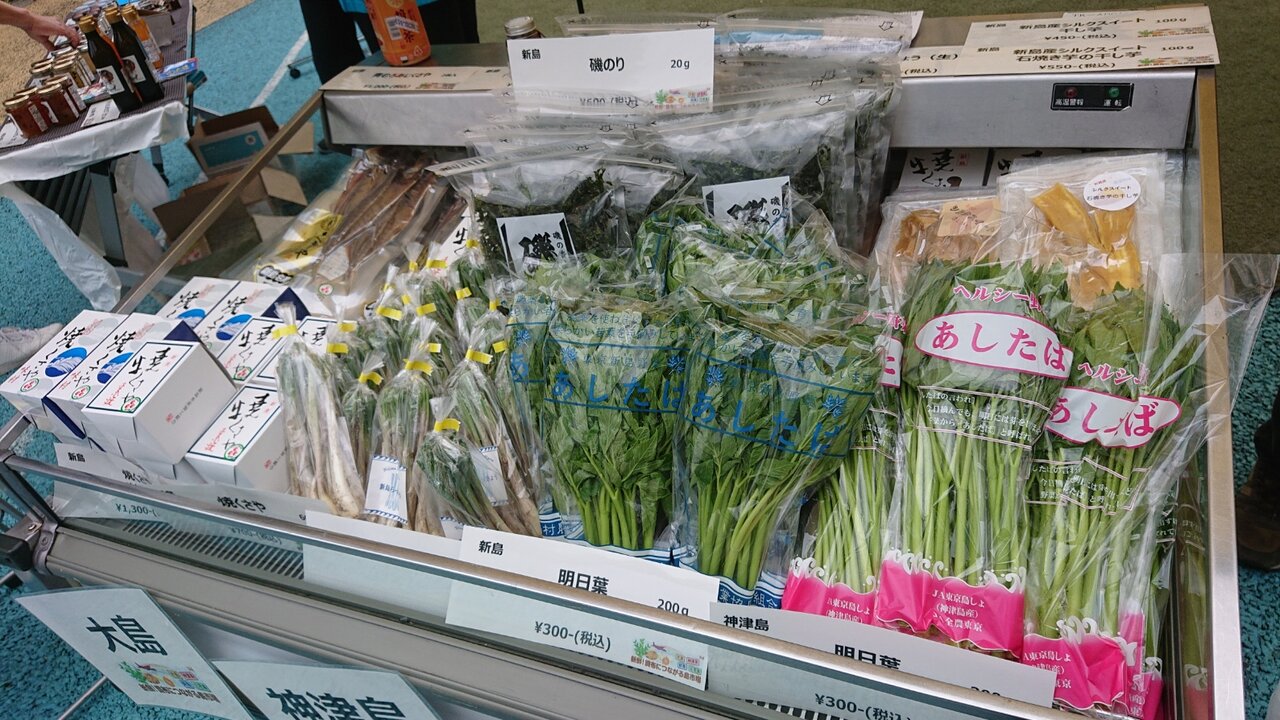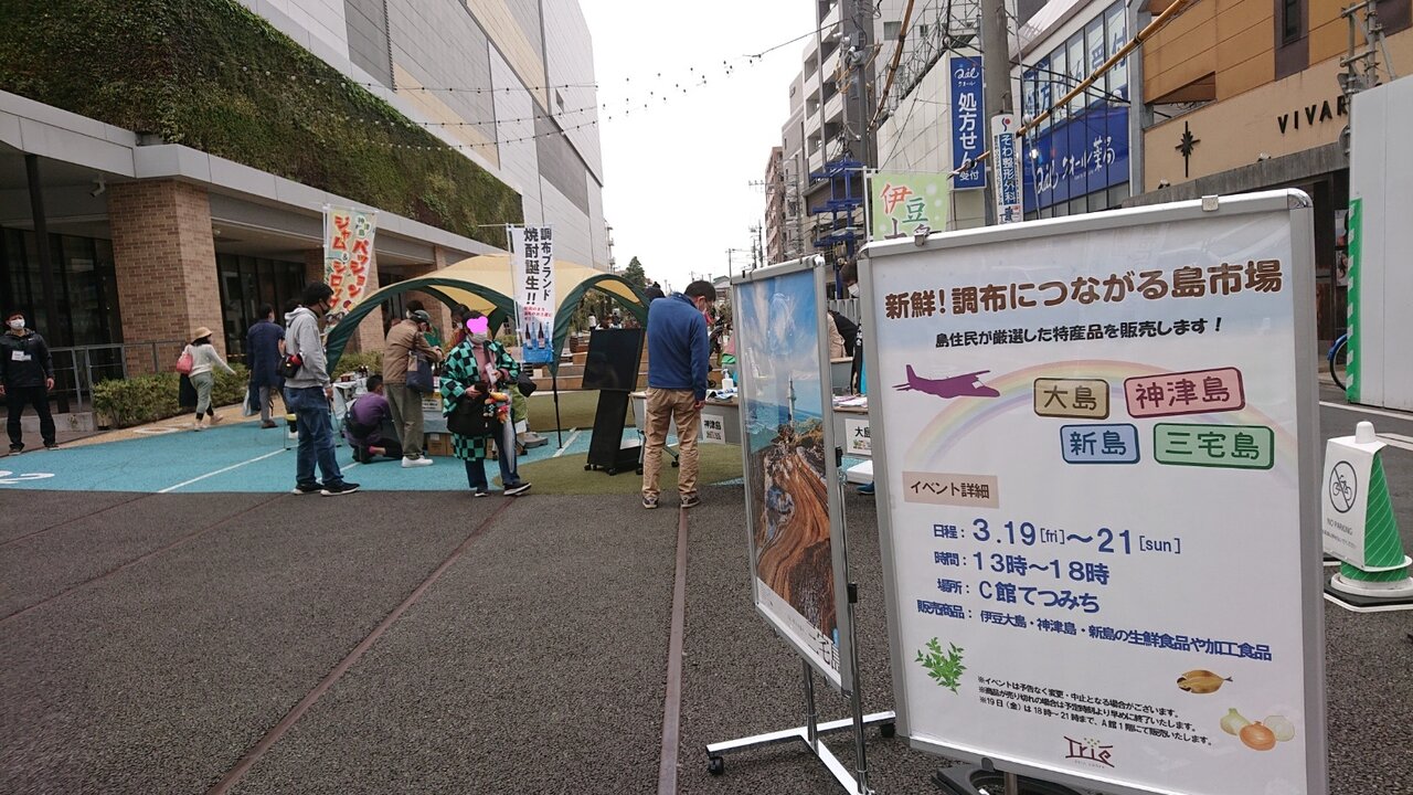 皆様こんにちは。いさみ編集局長です。調布トリエのテツ道イベントとして大島・神津島・新島・三宅島の4島の"新鮮!調布につながる島市場"が明日まで映画館の入ってるC館横で開催中であります。